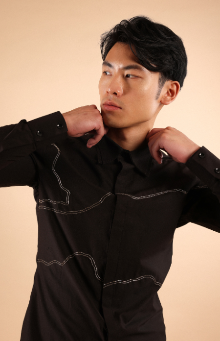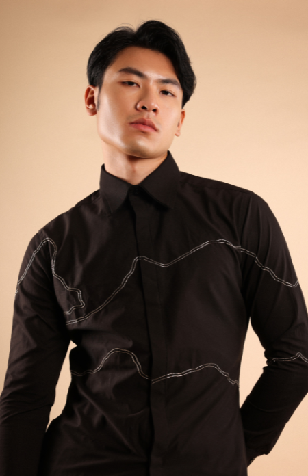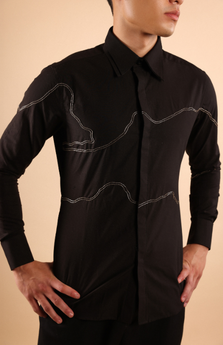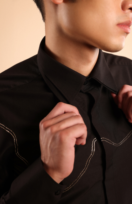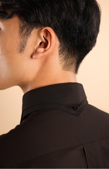 - Details - Double Collar, Concealed Placket, Enlarged Cuff. Pleated Back