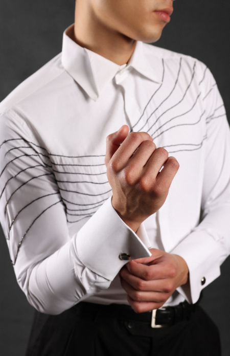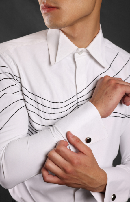 - Details - Stylized Cuff, Folded Collar, Concealed Placket